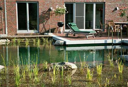 ein Naturpool im architektonischen Stil mit natürlichen Pflanzbereichen
